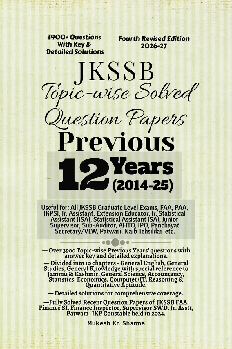 Brand New edition of Mukesh Sharma JKSSB PYQ 2014 to 2025 Latest Edition is out. If you’re preparing for upcoming Jammu Kashmir Service Selection Board JKSSB Exam, then this Previous 12 year Papers compiled book is best choice for revision portion. This book has more than 3800+ topicwise questions with detailed point to point explanation.